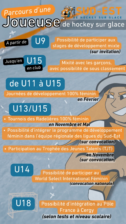 Au sein de nos ligues du SUd-Est, le développement de la pratique féminine est une priorité : encourager les jeunes filles à chausser les patins, accompagner les joueuses dans leur progression et valoriser leurs parcours font partie intégrante de nos actions.