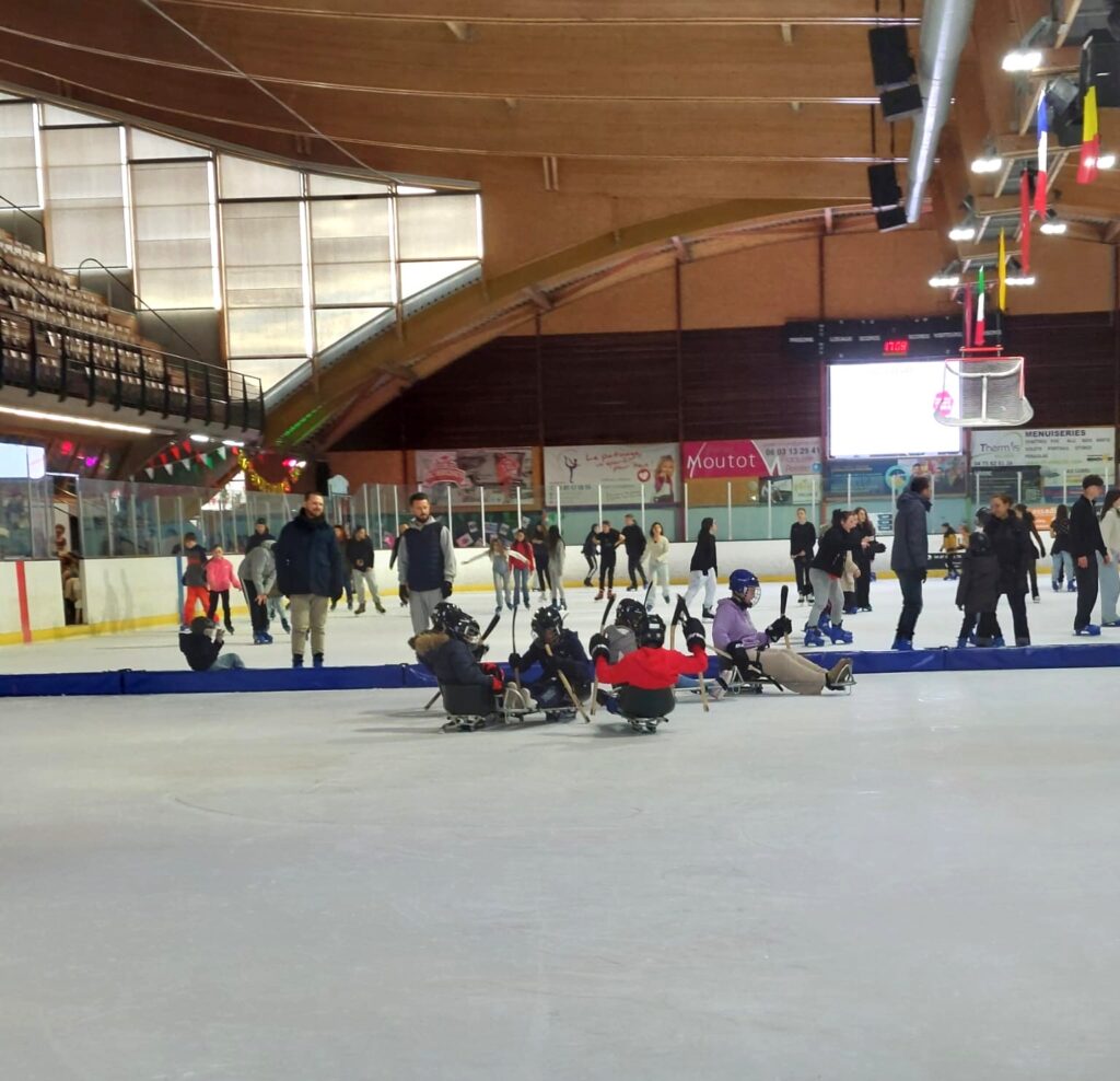 Des pratiquants handisport, mais aussi des curieux venus initialement pour une séance de patinage, ont troqué leurs patins pour une luge, le temps d’une expérience inédite.