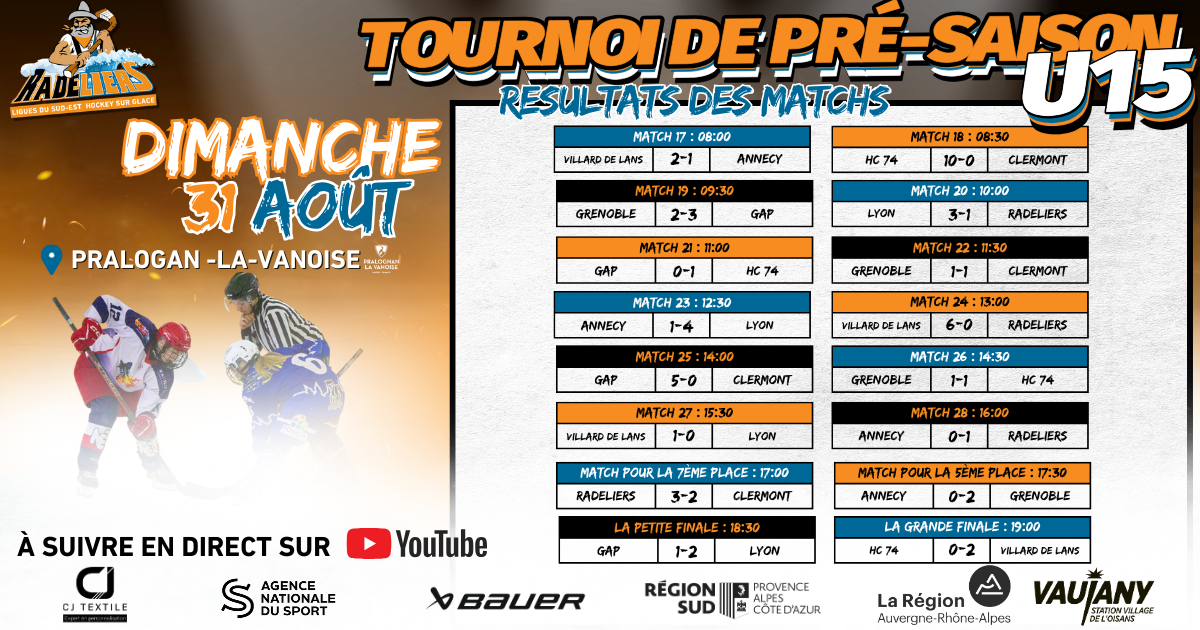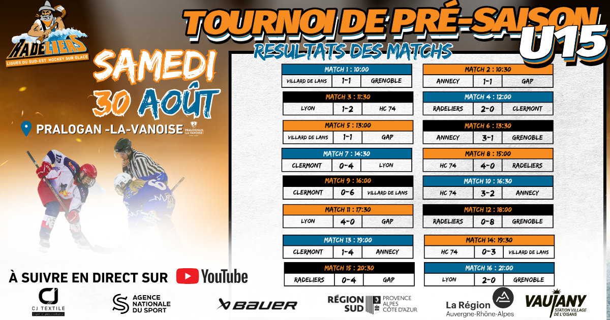 Visionnez les matchs sur Radeliers TV.